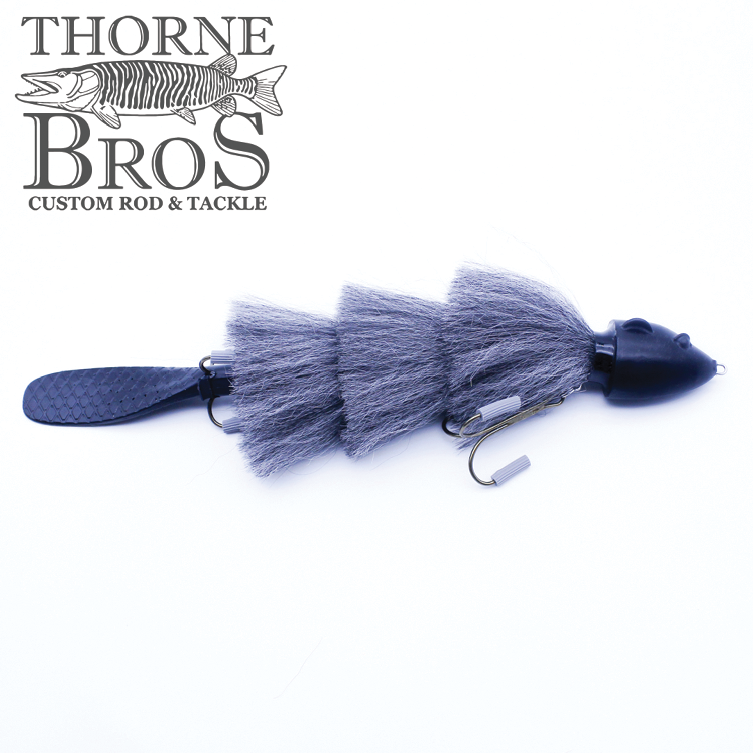 The Baby Beaver is constructed of plastic with .051 wire molded into each body piece. Each body piece is hand tied with deer hair and connected together with split rings. The rubber tail is molded onto the hook and is attached to the bait with a split ring making it replaceable.