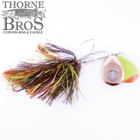 The Double Cowgirl has become one of the most, if not THE, classic big fish lures. It is truly something different for in-line spinners. The huge spinner blades create a tremendous vibration in the water. Flashabou skirting gives it color, lifelike action and a huge profile, making it the best baitfish simulating inline spinner on the market today. Two 7/0 Mustad hooks give it an excellent hooking percentage, so you are sure to catch the big one. The amount of 50" fish caught on this bait in its lifespan is truly incredible. This is a trend setting bait that deserves to be represented in everyone's tackle box!